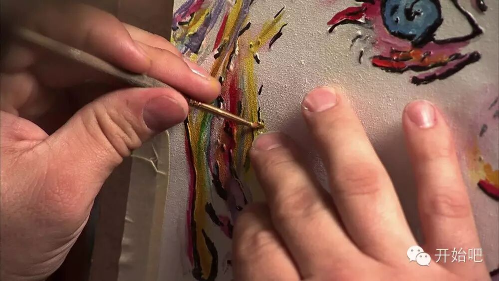 手指变成了他的眼睛,他用手指触摸画布,用手指调出颜色,用手指引导画笔……心中的色彩炸裂开来,它们强迫他活下去,敦促他在画布上把所有颜色呈现出来。
