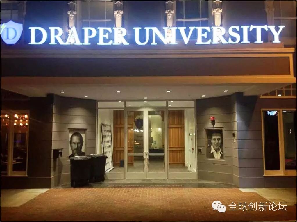 Tim Draper是一个非常有名的投资家,他做了一个大学(DraperUniversity),这个大学是年轻人创业的培训和孵化中心。同在硅谷PayPal的联合创始人Peter Thiel设立的基金甚至会鼓励你从常规的大学里面辍学。我们知道历史上最伟大的公司都是没上完学这些人做出来的,不管比尔盖茨、乔布斯还是扎克伯格,大学内有一个创新基金专门鼓励那些年轻的大学生辍学的,如果你有勇气退学并且有一个好的创意,大学就有一笔好的钱资助你。大学的门口左边是乔布斯,右边是特斯拉的创始人Elon Musk的头像。